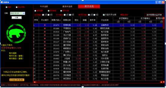②点击牛熊判市界面右侧的当前市场下适合的策略按钮,弹出“一键选股”界面后,选择所要选股的日期(系统默认为当日),点击计算按钮。