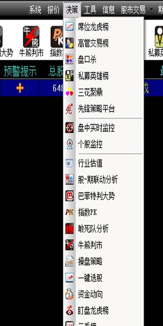 在决策菜单和快捷启动增加“高管交易榜”功能。旨在为用户提供一个可以对各个板块,各只股票的内幕交易进行分析的工具。