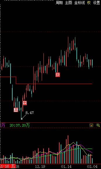 K线图同时显示高管交易榜提示标记和符合出击条件的标志