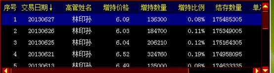 区域5:选中个股的具体增持记录情况,默认按照交易日期进行排序