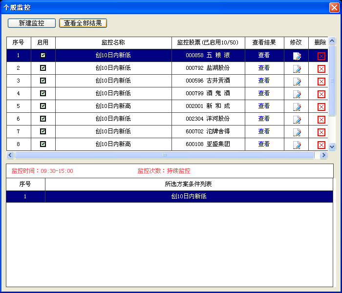 c、用户可以个股监控界面,对监控方案,进行管理