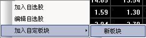 在具体展示界面,鼠标右键有如下功能:加入自选股;编辑自选股;加入自定板块。