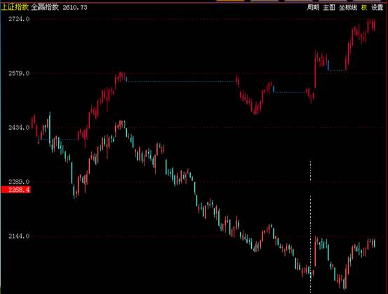 图中,红色的k线为适合操作的大盘期间,蓝色的虚线为适宜持币期间。