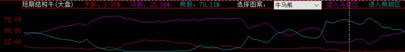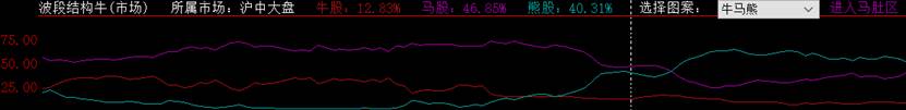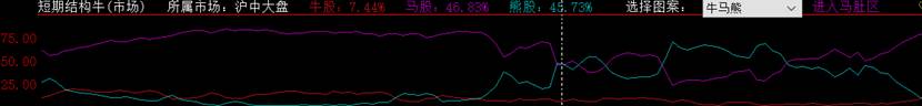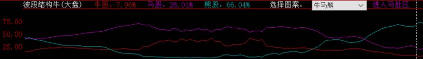 该指标将沪深所有股票(包括中小板和创业板)分为牛股、马股、熊股,并显示牛马熊所占比例。