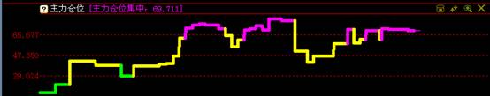 主力仓位的曲线反映了主力从收集筹码到卖出的过程,数值越大,说明主力仓位越集中,数值越小,则说明主力仓位越分散。主力仓位曲线如下图所示:
