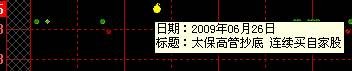 1)信息雷达(见下图):分时图上方有黄色圆点提示,鼠标移至该原点上方,会自动弹出消息摘要。单击该图标,弹出全文窗口。