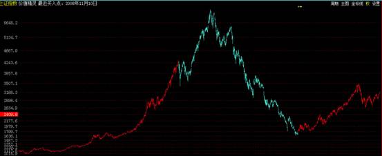 蓝色空心K线:不适宜持股,且处于超跌状态,需时刻关注“短线精灵”的K线走势