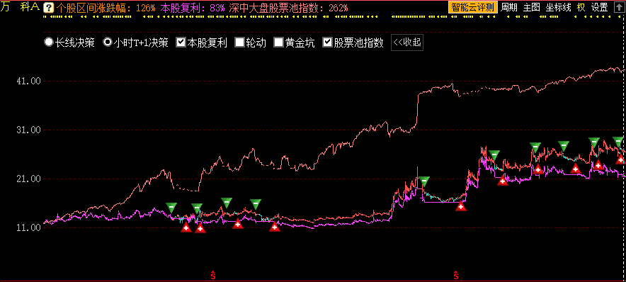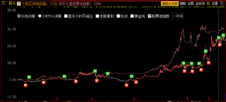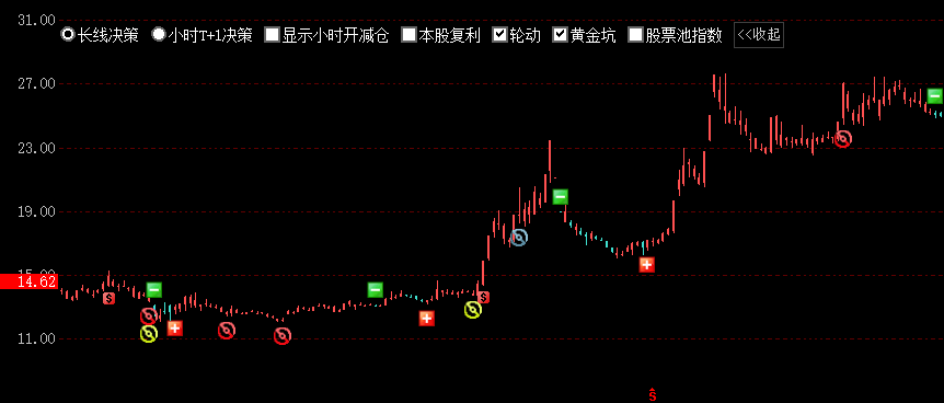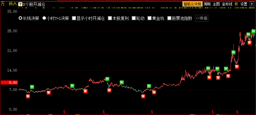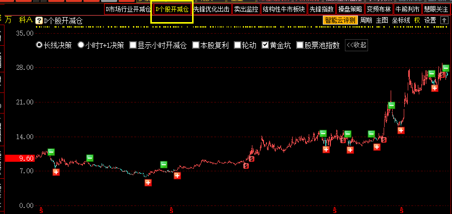 选择长线决策,在个股日K线走势图上可见长线决策的开减仓信号。