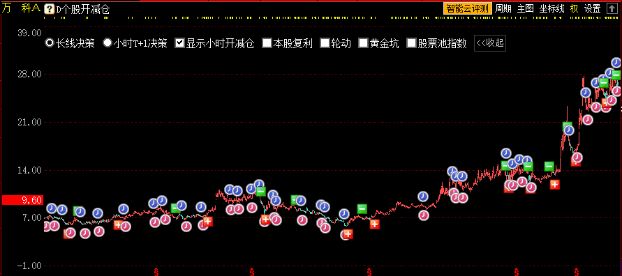 选择小时决策,在个股60分钟K线上可见小时决策的开减仓信号。