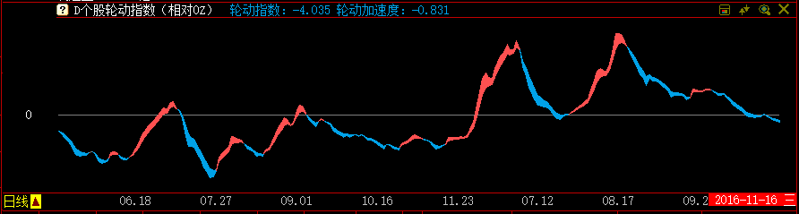 该指标表示同期个股与0Z指数的走势对比,红色区域表示同期个股走势强于0Z指数走势,蓝色区域表示同期个股走势弱于0Z指数走势。
