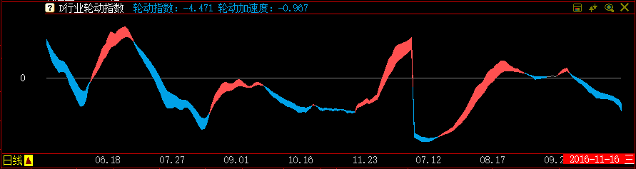 该指标表示同期行业与0Z指数的走势对比,红色区域表示同期所属行业走势强于0Z指数走势,蓝色区域表示同期所属行业走势弱于0Z指数走势。