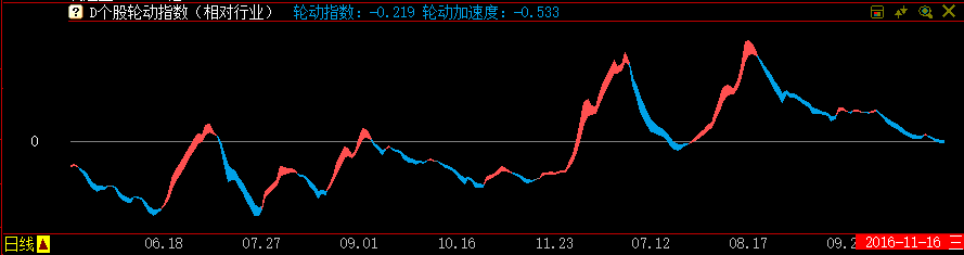 该指标表示同期个股与所属行业的走势对比,红色区域表示同期个股走势强于所属行业走势,蓝色区域表示同期个股走势弱于所属行业走势。