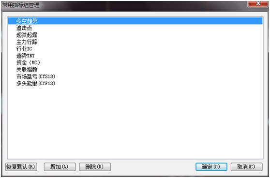 1.管理。管理常用指标组,进行增减。点击弹出管理窗口,确定之后所选指标组将显示在“管理”按钮之后。