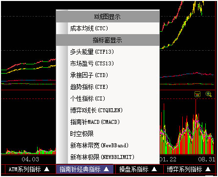 对k线界面中原有的模板位置进行了调整,调整到了k线的左侧,同时在分时界面中也配置了模板,便于更快捷的调用。
