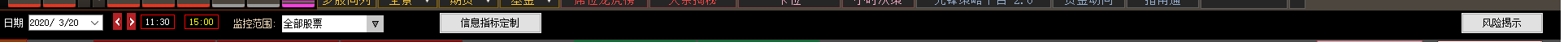 最上端:日期、监控范围、信息指标定制、风险提示 。