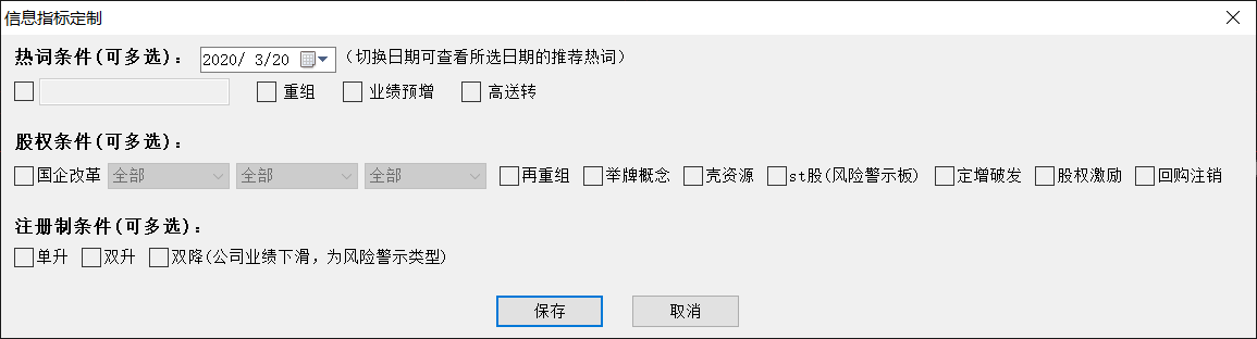 信息指标定制:可在监控的股票中,做出多项指标定制,根据定制的指标可以选出符合定制条件的股票。(注:定制的指标信息会出现在股票池列布局的最后面)