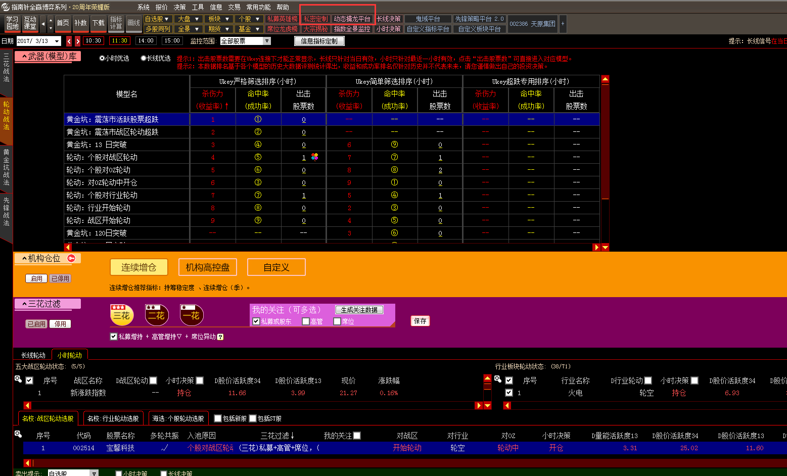 4、武器(模型)库排名仅针对轮动和黄金坑战法模型进行排名。