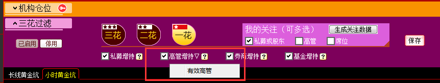 一花:私募增持、高管增持、券商增持、基金增持可自由勾选。