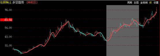 a、当股票处于上涨区间时,该指标以红色的线显示,并且当鼠标移动到k线图上该区区域时,会在k线图上方显示持股区,提示用户继续持有该股票;