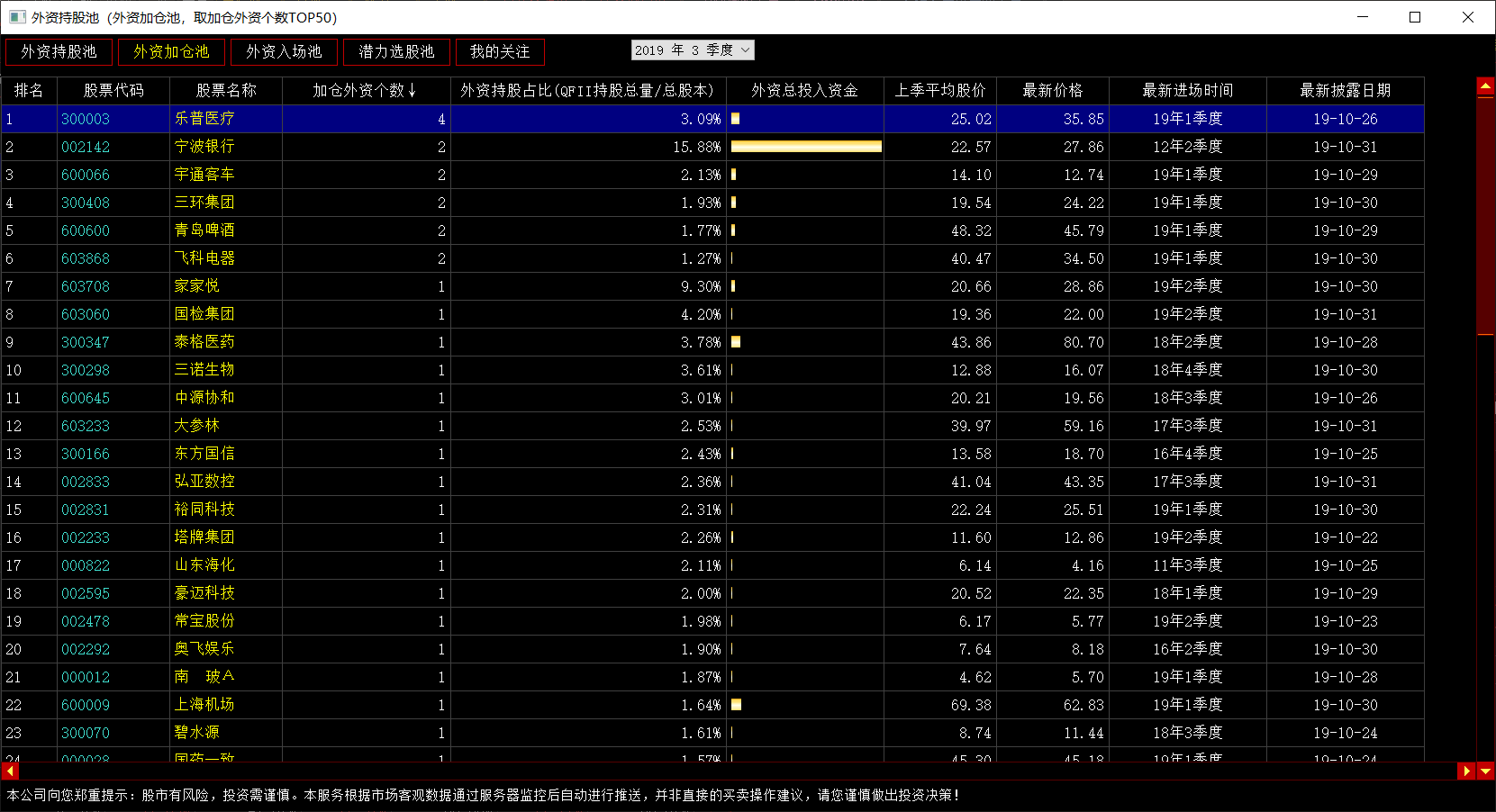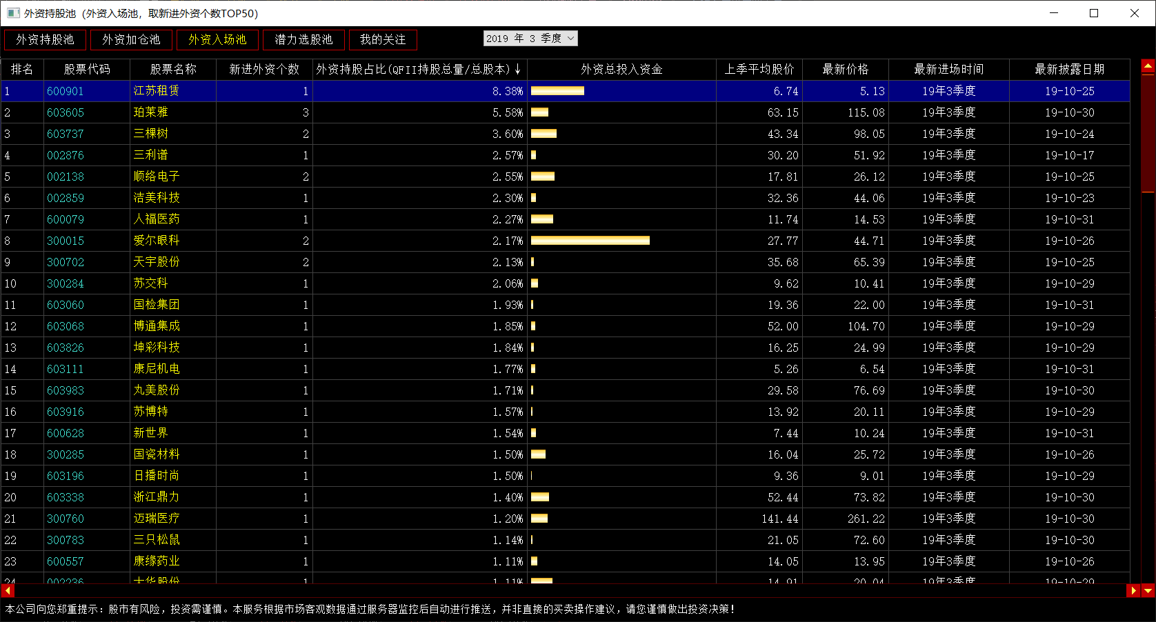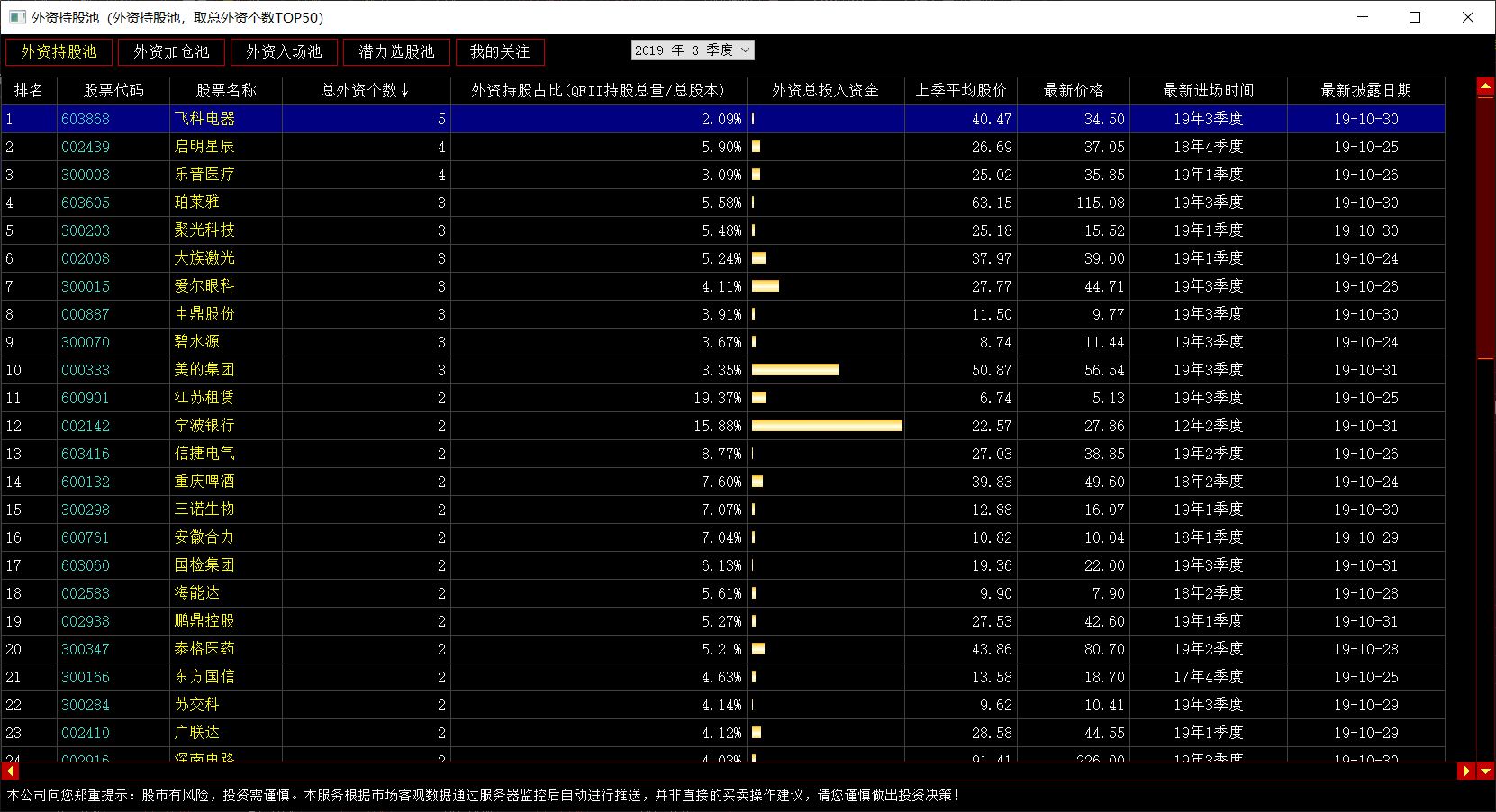 ,就调出了外资持股池的功能界面。