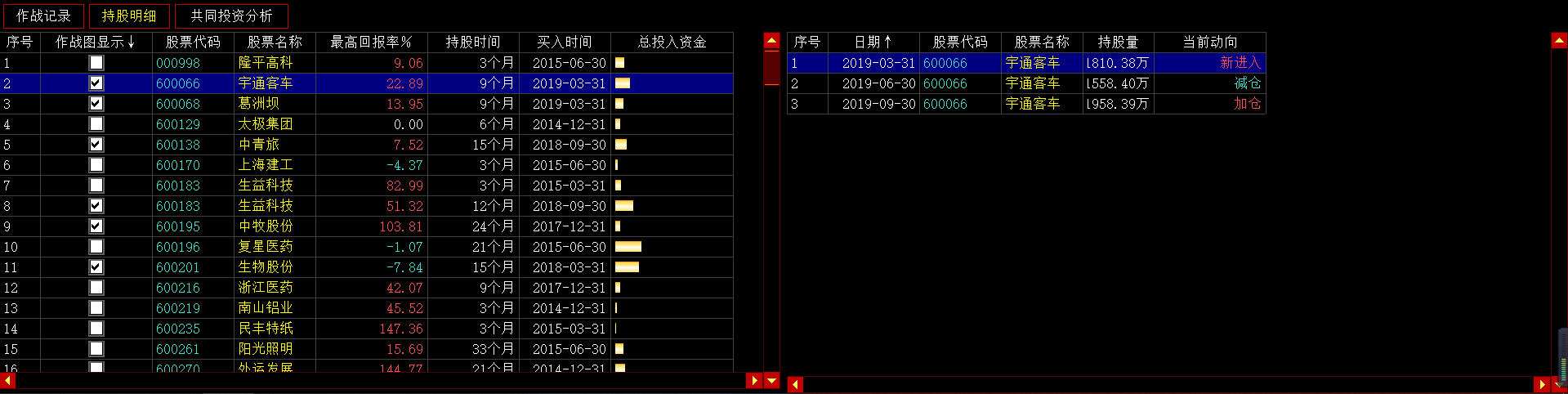 共同投资中显示的为与所选股东有相同投资股票的人,双击某个共同投资人,进入该投资人的作战图界面。