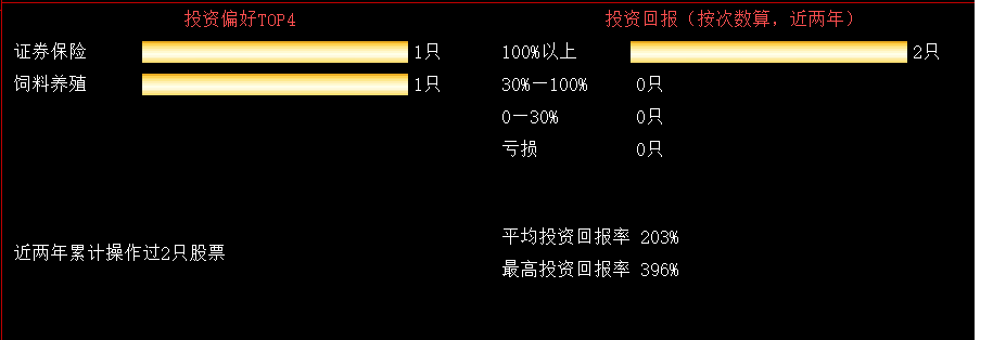 (2)在界面的右侧是对当前选择的外资机构的分析:包括外资机构的投资偏好、投资回报、当前持有的股票信息,尚未盈利的股票信息。用户可通过上述信息对外资机构有一个准确的了解。