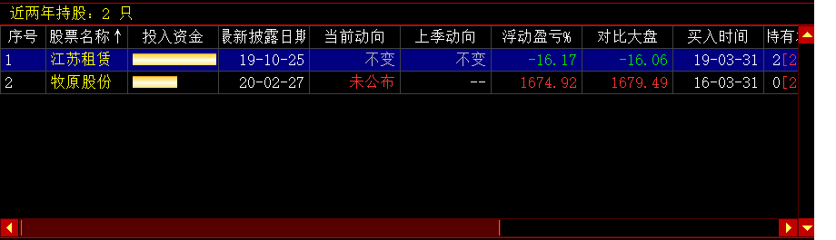 当季投资中显示的为所选股东当季持有的股票,双击某只股票可以进入该股票的k线界面。