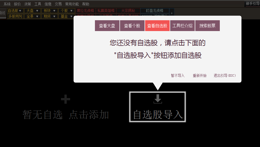 点击“自选股”按钮后,如果用户自选股池中没有股票,可试一下导入自选股