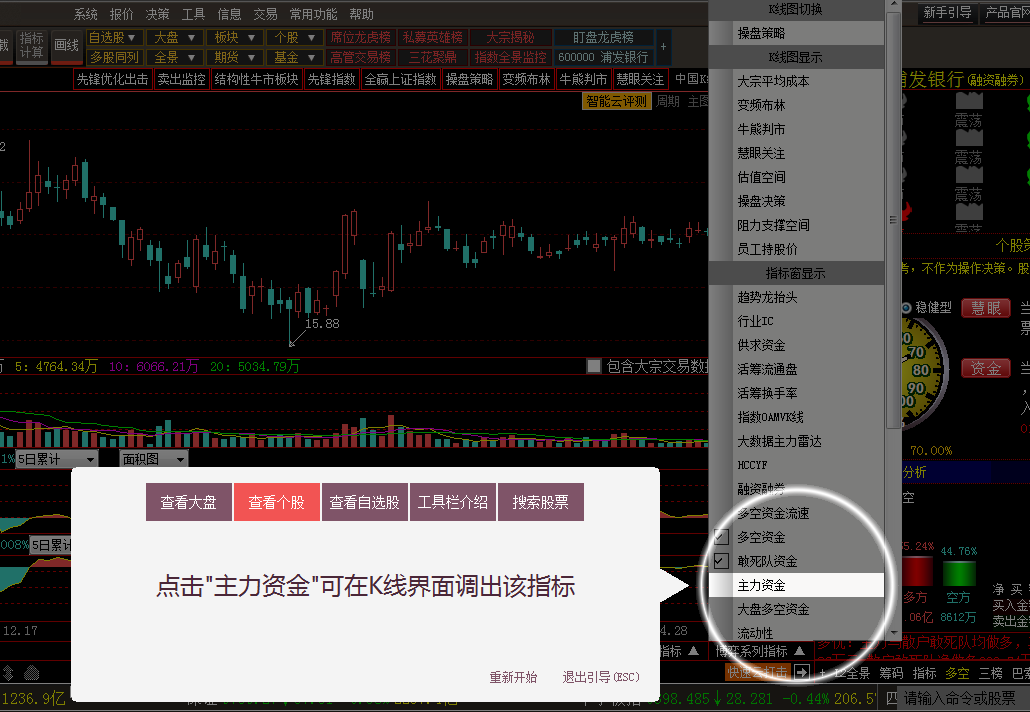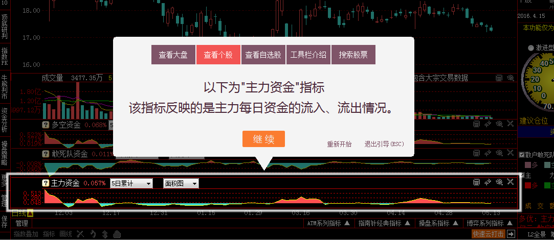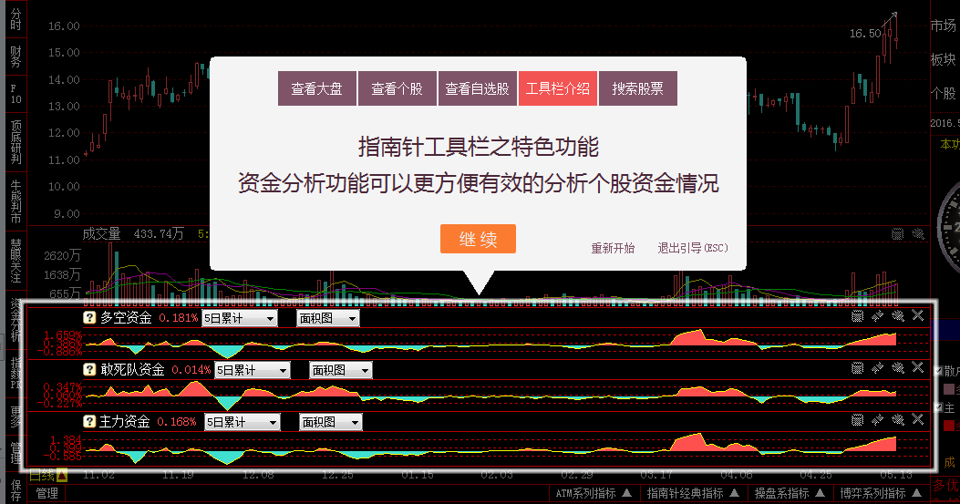 注:多空资金与敢死队资金只有激活用户解锁后才能查看,以下为激活并解锁后的资金分析功能界面。如不想激活和解锁可点继续直接跳过。