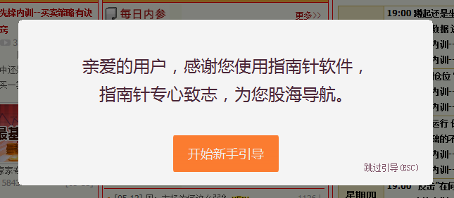点击“开始新手引导”可进入新手引导的流程,也可点击“跳过引导”或按键盘的ESC键退出引导。