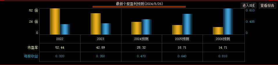 包括对市盈率和每股收益的预测,若想查看报告详情可点击“查看报告”或者双击该区域界面。