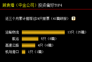 投资偏好TOP4为分析师关注最多的4个行业领域,并统计了近一年/近半年/近三个月该分析师在不同行业领域推荐过的股票数量和发表的研报数量。