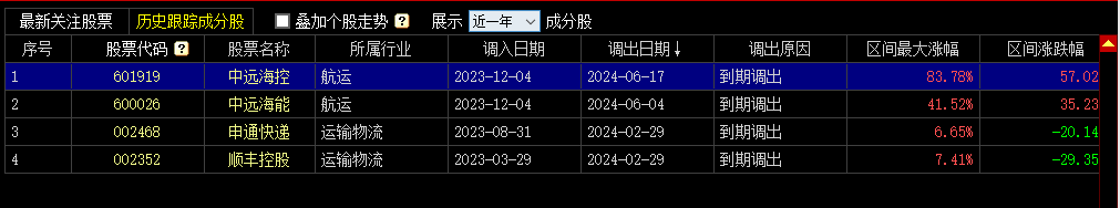 历史跟踪成分股为已过期调出的股票,最多可查看近五年的历史成分股。
