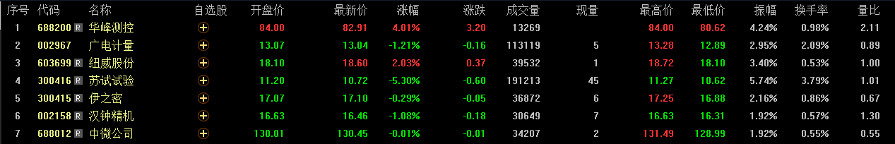 界面与机构热门股界面相同,只是左侧一列一号区域为用户自选股池中的股票。