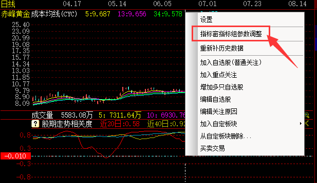 右键单击该指标,点击指标窗指标组参数调整,见下图: