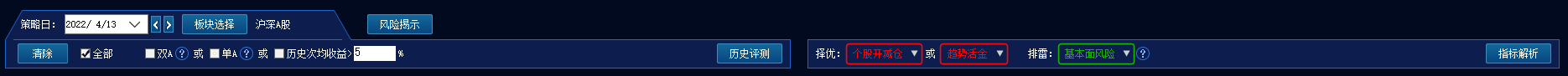 本功能数据于盘后计算并更新,当日盘中可供选择的最新策略日期为上一个交易日。